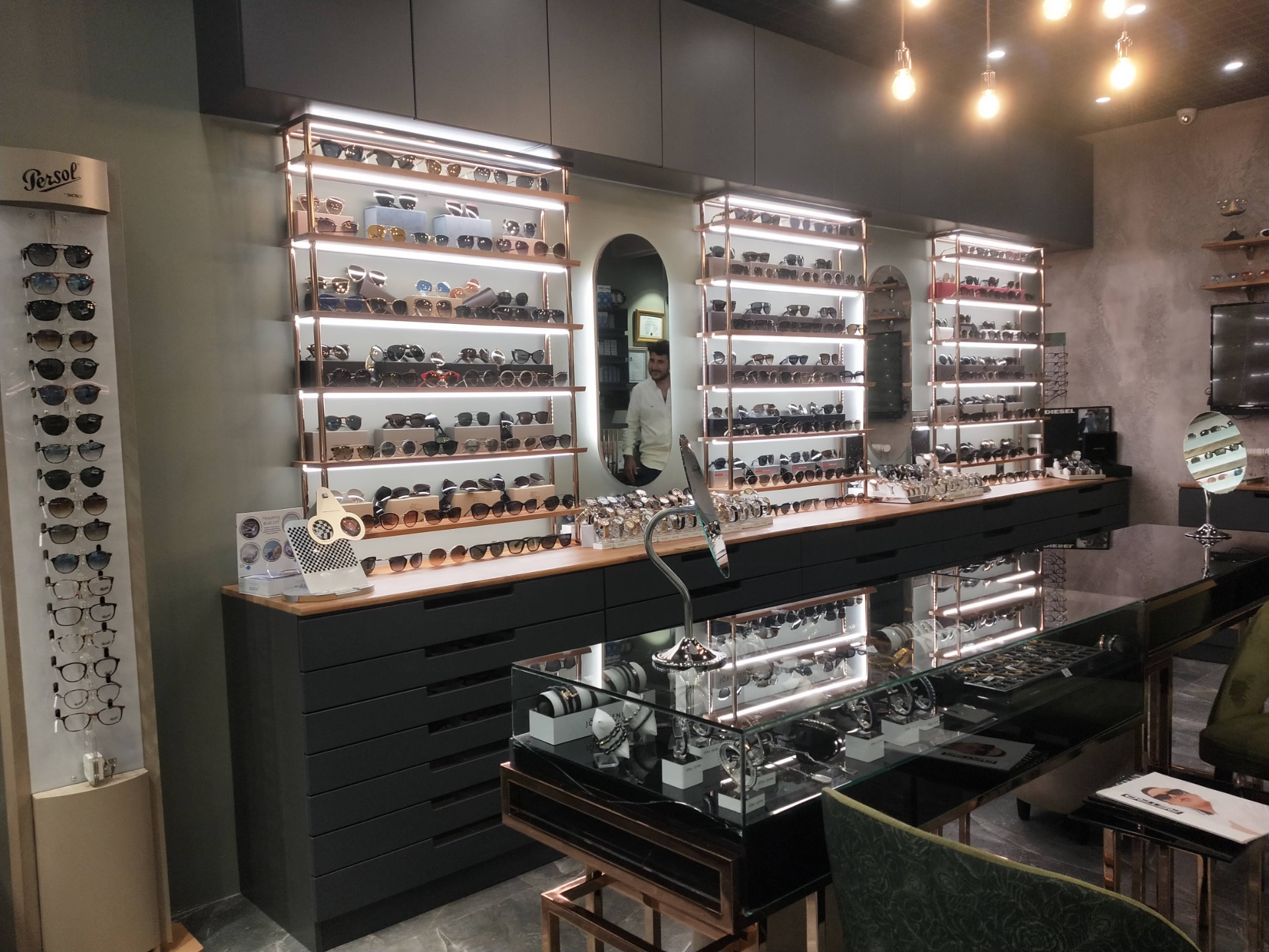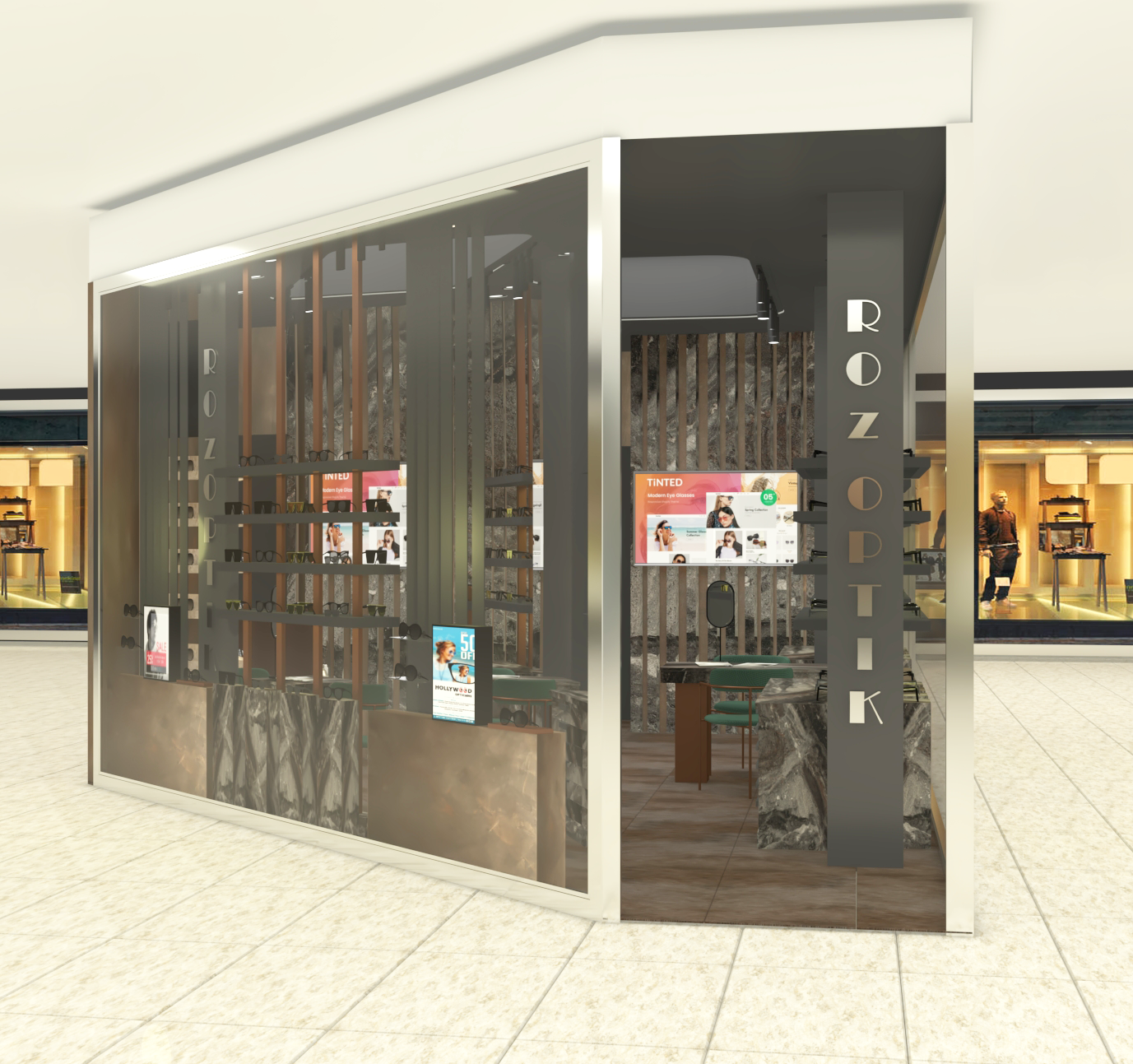 Furkan Optik mağazası için hazırlanan iç mimari tasarımda, fonksiyonellik, şeffaflık ve modern çizgiler ön planda tutulmuştur. Dikdörtgen formda planlanan mağaza, alanın verimli kullanımına olanak tanıyan net bir yerleşim kurgusuyla ele alınmıştır.