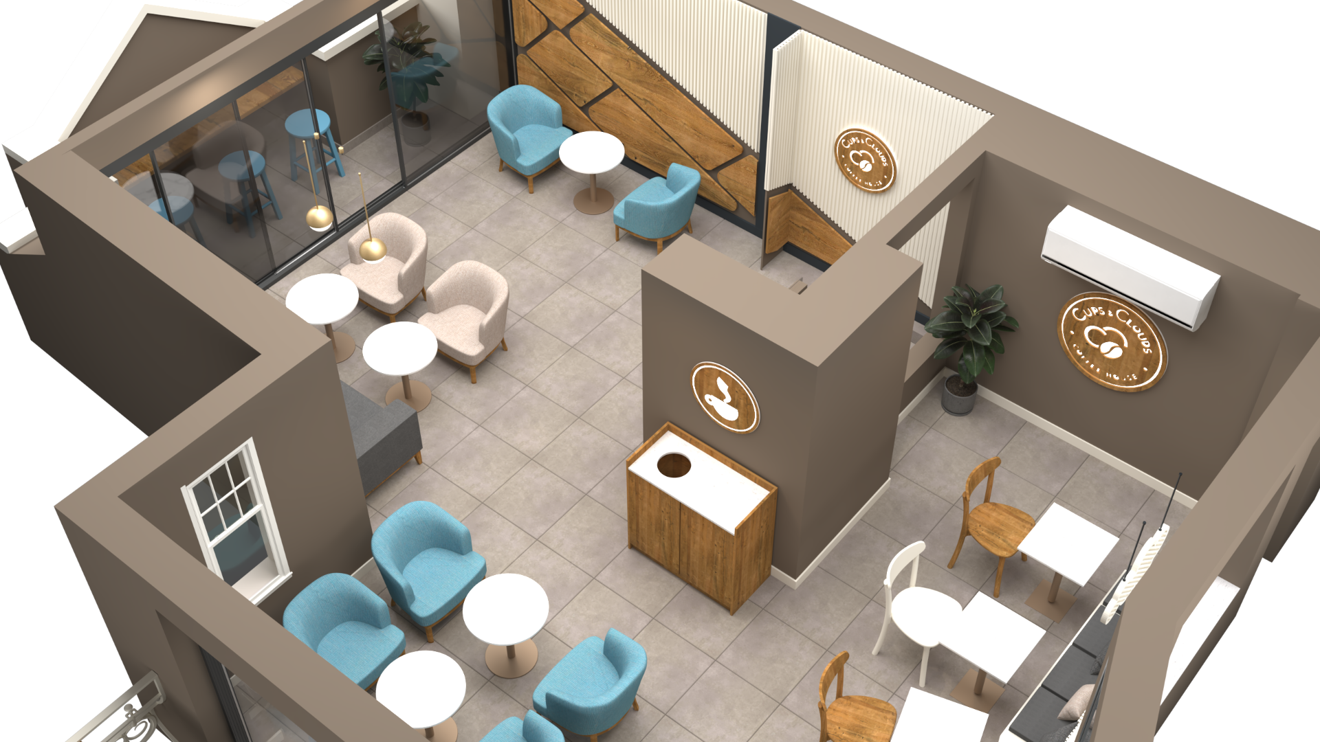 Kahve markasına özel olarak tasarlanan bu mağaza, markanın sıcak ve samimi kimliğini yansıtmak amacıyla 3D tasarım sürecinde detaylı şekilde kurgulanmıştır. Ahşabın doğal dokusu ile metalin endüstriyel etkisi bir araya getirilerek çağdaş, sade ve kullanıcının mekânla bağ kurmasını destekleyen bir atmosfer oluşturulmuştur.