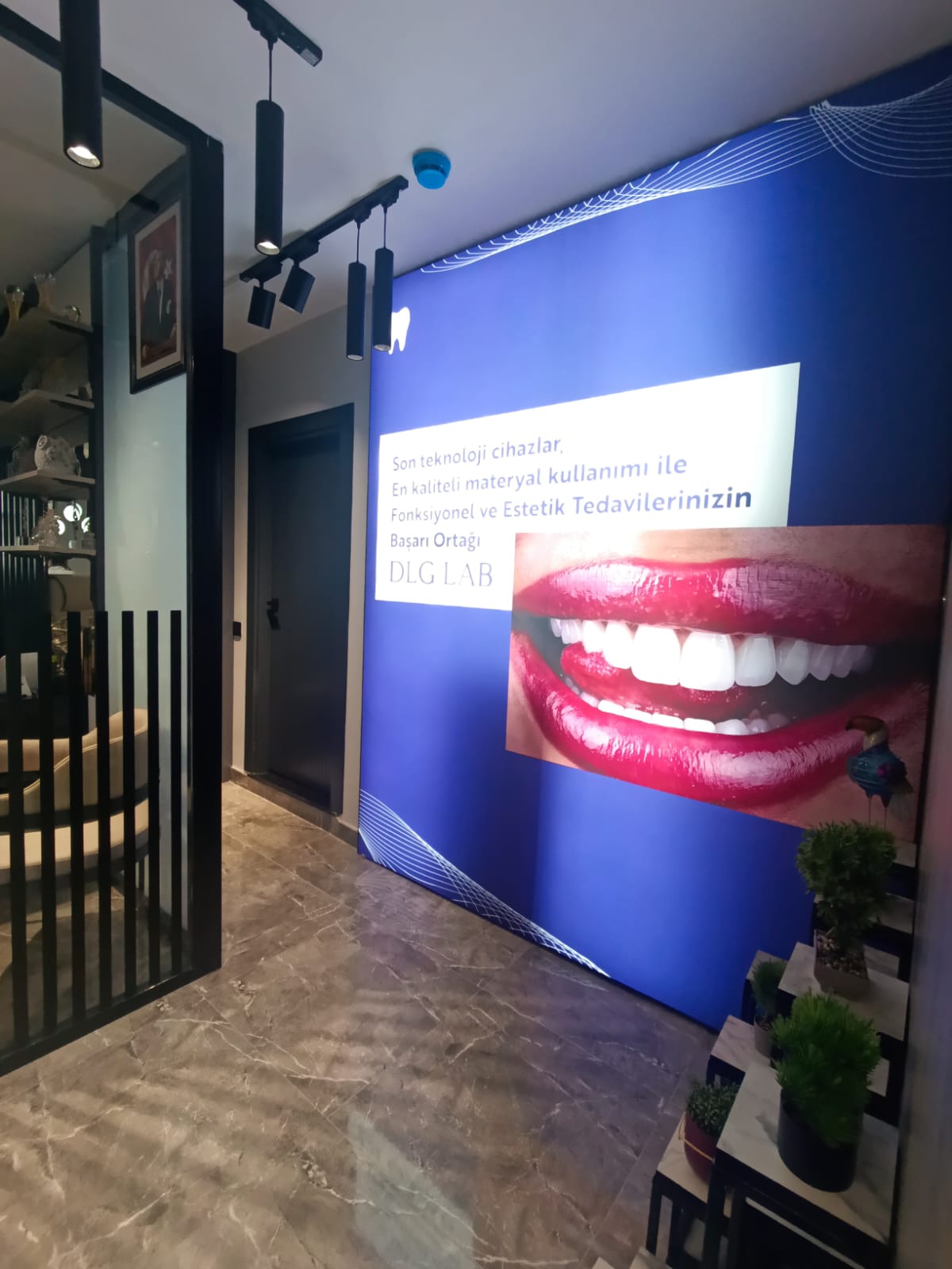 70 m² alana sahip, diş üretimi odaklı bu laboratuvar projesinde, markanın sektörel kimliğini yansıtacak özgün bir iç mimari tasarım ile birlikte sıfırdan kurumsal kimlik oluşturulmuştur. Proje; fonksiyonel ihtiyaçlar, hijyen standartları ve çalışma ergonomisi ön planda tutularak modern ve sade bir mekân kurgusu üzerine inşa edilmiştir.