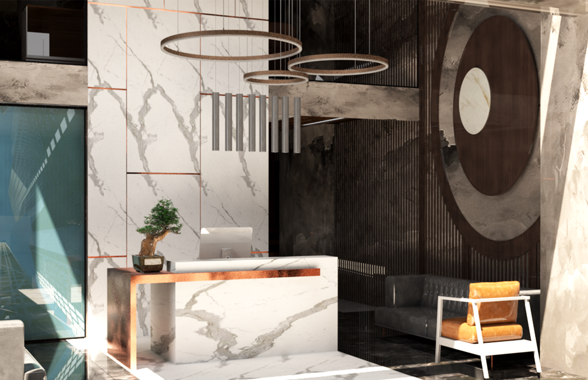 2022 yılında Antalya Gazipaşa'da yer alan emlak ofisi için tasarlanan bu projede, kurumun prestijli marka kimliğini yansıtan modern ve şık bir mekânsal kurgu oluşturuldu. Giriş ve karşılama alanı, ziyaretçileri etkileyici bir ilk izlenimle karşılamak üzere özenle planlanırken; toplantı odası ve kişisel ofis alanları fonksiyonellik ile lüks...