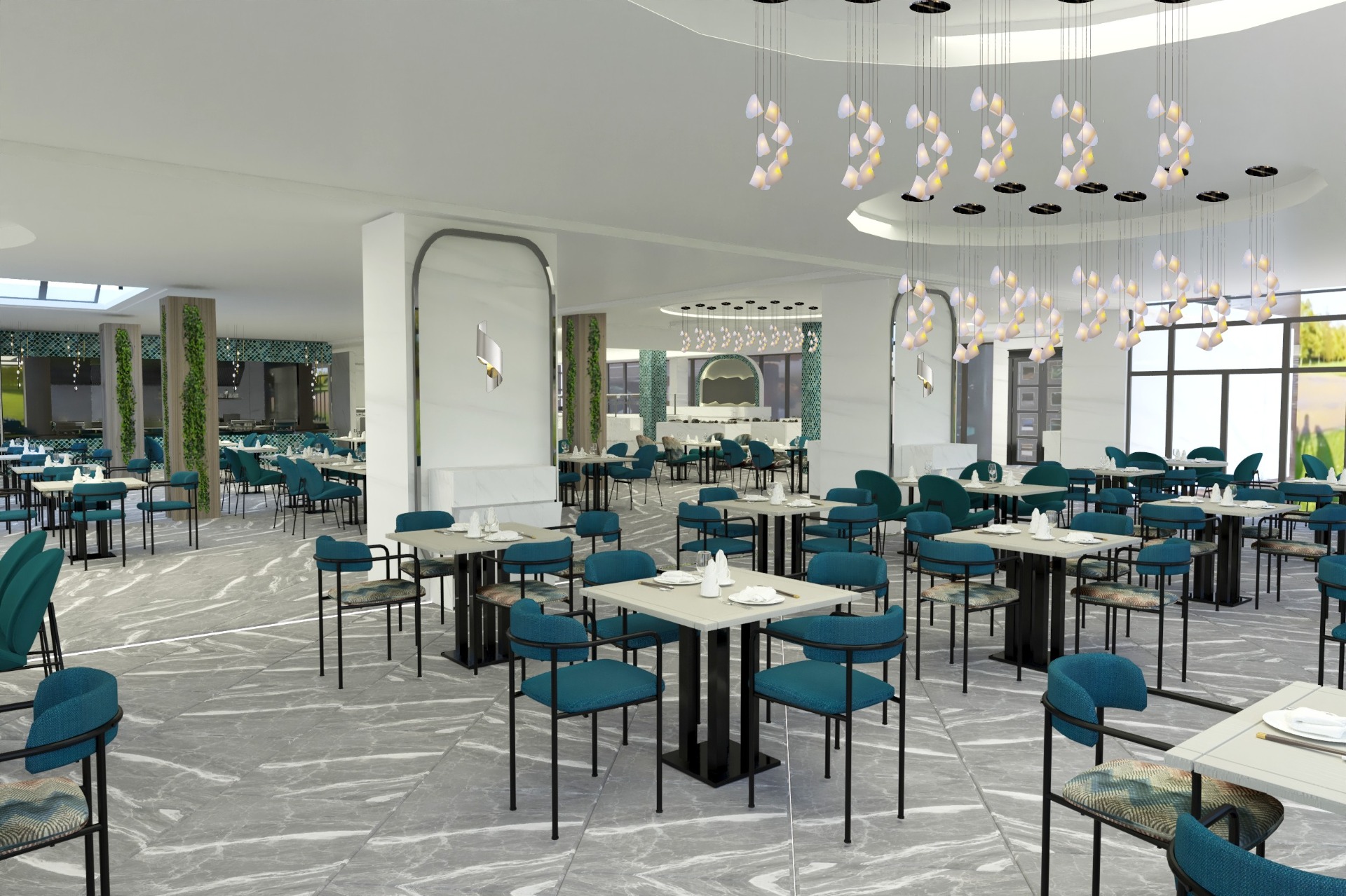 Rusya'nın Gelendzik kentinde yer alan bir otelin restoranı için hazırlanan konsept projede, mekânın sahil kasabası atmosferini yansıtan modern ve lüks bir tasarım yaklaşımı benimsendi. Yeni yerleşim kurgusu doğrultusunda yarı açık bir mutfak eklenerek hem şeffaflık hem de canlı bir gastronomi deneyimi hedeflendi.