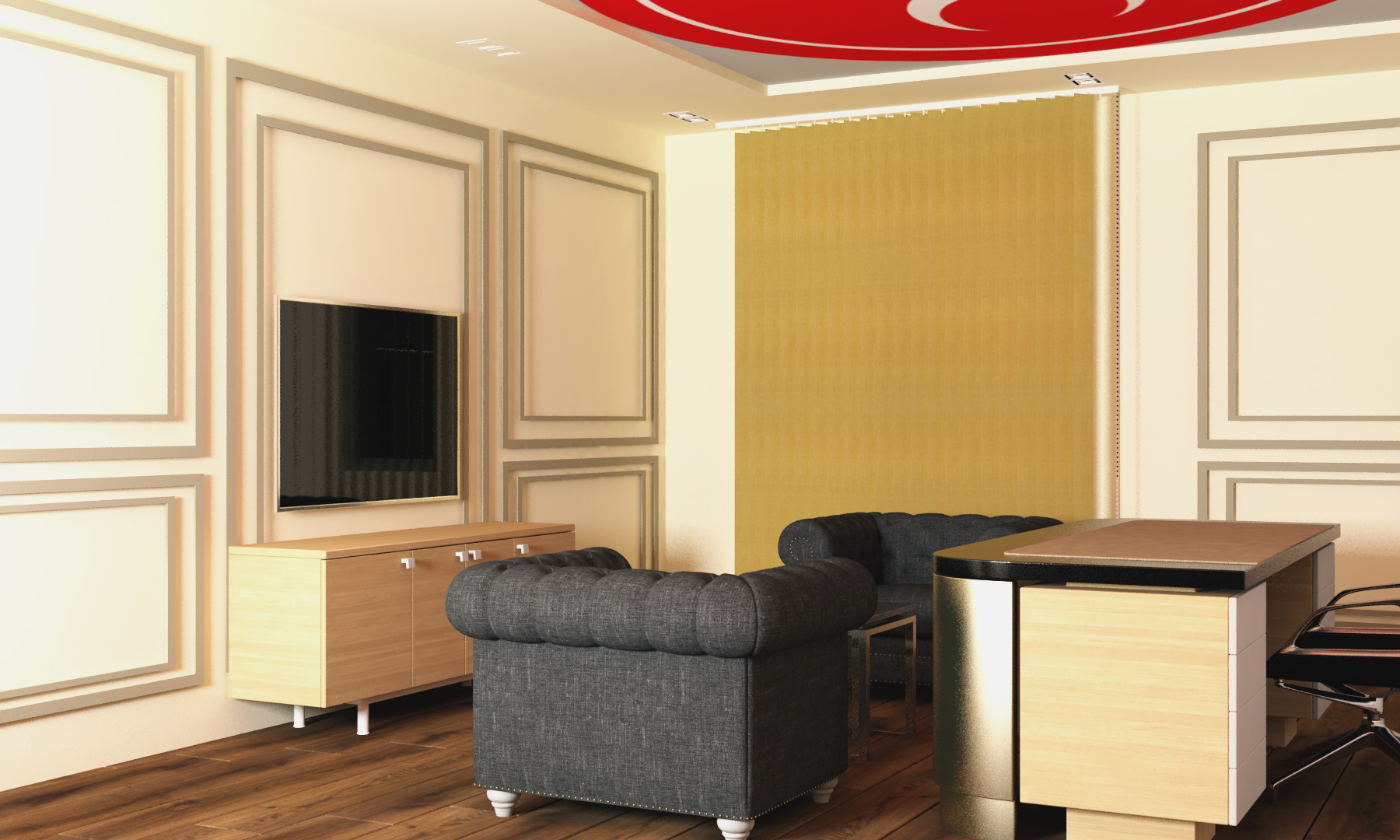 2020 yılında tasarlanan MHP Kırklareli İl Başkanlığı Ofisi, kurumsal kimliği mekânsal tasarıma yansıtan, fonksiyonel ve temsil gücü yüksek bir iç mekân oluşturmayı hedeflemiştir. Projede, parti kimliğinin güçlü sembollerinden biri olan MHP amblemi, mekânın odak noktası olacak şekilde gergi tavan uygulaması ile vurgulanmış; bu sayede hem...